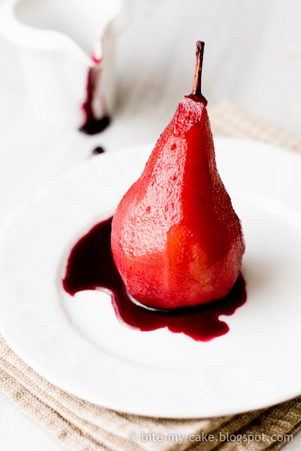 Again, one of those no-fuss desserts, with a few simple ingredients, pears and red wine being main stars and winning Oscars for this role :) Such a great dessert, simple and elegant. Great for cold winter nights, or as a fancy dish. Pears are anything but ordinary in this combination! Have I rhapsodized enough? :) Let us move on to the recipe: