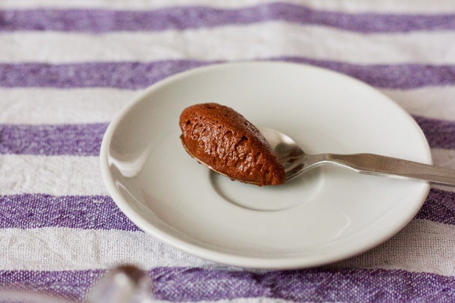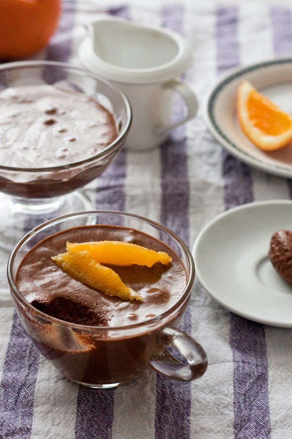 Mousse je francuski klasik, a osnovno pravilo je da mu tekstura, kao što mu ime govori, mora biti pjenasta. Možete ga aromatizirati po želji, ja sam ovaj put dodala malo narančine korice. Žutanjke obavezno obradim na pari jer ne volim koristiti sirova jaja, a bjelanjke sam ovaj put, moram priznati, koristila sirove. Ako to ne želite, i njih možete termički obraditi tako da ih pomiješate sa šećerom tek toliko da se malo zapjene a zatim kuhate na pari 10-ak minuta. Premjestite u posudu za miksanje i miksajte dok ne dobijete sjajnu, glatku pjenu (šaum). Ovaj mousse možete poslužiti posipan kandiranom narančinom koricom, ili ploškama naranče koje ste skuhali u šećernom sirupu.- 120 g tamne čokolade