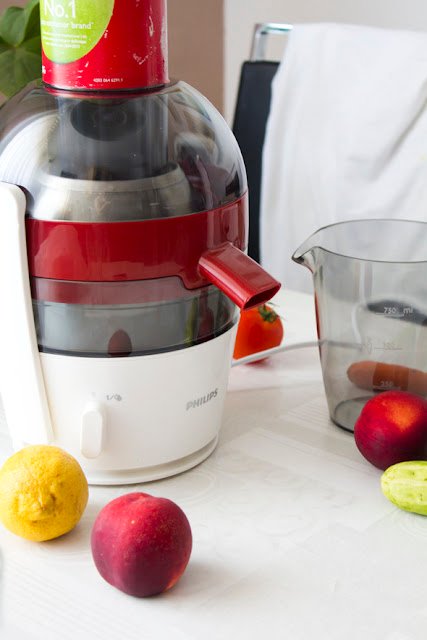 Prije par tjedana dobila sam priliku isprobati još jedan Philipsov kuhinjski uređaj - Quickclean sokovnik. Ljeto je vrijeme kad obično volim napraviti pokoji koktel u kućnoj radinosti pa me razveselilo što ću ih uz ovaj sokovnik moći napraviti od svježe cijeđenog soka, umjesto da kupujem gotov sok. Prvo za što sam se odlučila je bila neka moja verzija Bloody Mary. Svakako nije koktel u klasičnom smislu, jer je slan i ljut istovremeno, i definitivno razbuđuje :) Amerikanci bi rekli da je ovaj koktel acquired taste. Rajčice nije potrebno guliti niti sjeckati, samo ih oprane cijele stavite u sokovnik i za nekoliko sekundi imate svježe iscijeđen sok. Ovo je posebno prikladno ako volite kuhati domaću šalšu od rajčica, jako ćete si skratiti vrijeme, nema guljenja rajčica, njihov sok doslovce dobijete u nekoliko sekundi. Sokovnik je kompaktan i izuzetno praktičan, lako mu je pronaći mjesto u kuhinji. I čišćenje sokovnika je vrlo jednostavno, a u jednom potezu možete iscijediti do 2,5 l soka.