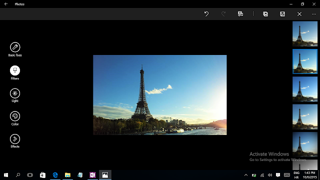 Ovdje moram spomenuti aplikaciju koja je integrirana u Windows 10, dakle dolazi s njima, a to je odlično opremljena galerija za fotografije, koja vam također omogućava slične korekcije na fotografijama. Ona ujedinjuje program za pregled slika, uređivanje istih i izrezivanje. S lijeve strane izbornika možete birati između tri vrste prikaza: kolekcije, albumi i mape. S donje lijeve strane vidite opciju za postavke. Novost je povezivanje slika, dakle sve slike pohranjene u oblaku možete pretraživati unutar ove galerije. Nude se i opcije brzog dijeljenja, kojime se automatski otvara aplikacija (npr. pošta, twitter itd.)