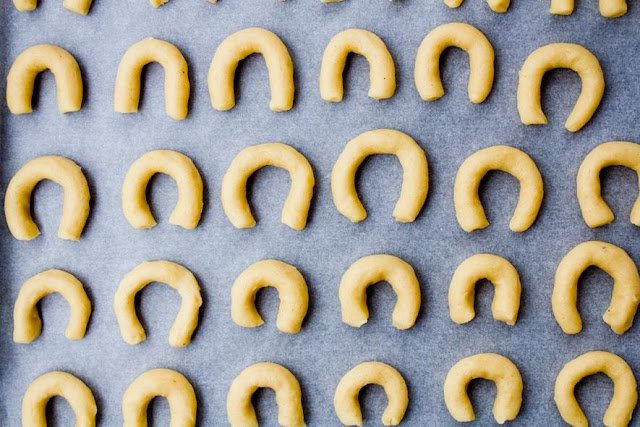 Ovo su divne, prhke i mirisne kiflice, a tijesto je bez orašastih plodova. S obzirom da mi gotovo svi kolači ove godine sadrže orašaste plodove, odlučila sam se upravo za ovaj recept za vanilice. Recpet je mamin i ona ga radi već duuugi niz godina pa sam ga ove godine ja odlučila ponoviti. Najčešće sam radila kiflice s orasima (rjeđe s lješnjacima), no ovo tijesto ne sadrži niti jedne. Iako je u maminoj bilježnici recept s margarinom (kao i većina recepata iz 80-ih), ja ih radim s maslacem i tijesto mi je ukusnije. Zbog praška za pecivo one narastu, ali ne izgube svoj oblik. Sve u svemu, meni jedan od najdražih recepata za kiflice:)