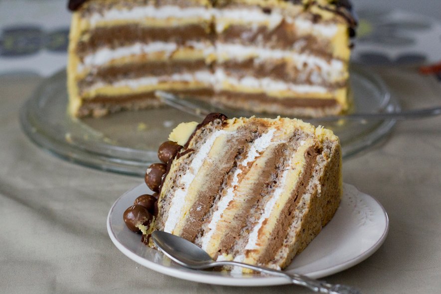 Inspiracija mi je bila Milka torta, ali kremu sam malo promijenila. U svakom slučaju, torta je idealna za proslave i one koji vole kremaste kolače, nije preslatka, kore su nježne dacquoise kore (kojima sam dodala pola žlice škrobnog brašna kako bi mi bile malo čvršće, s obzirom na količinu i težinu kreme). Koristila sam škrobno brašno umjesto glatkog pšeničnog jer su s njim kore nježnije, delikatnije.