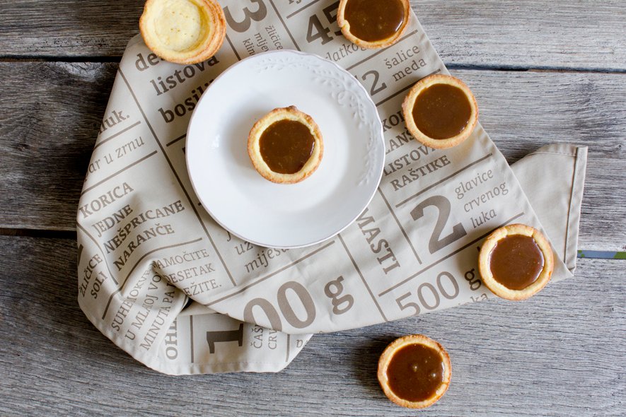 Ako bih morala birati jedan okus kojeg najviše volim, to bi definitivno bila karamela. Opće je poznato da se s karamelom odlično sljubljuje sol, s obzirom da je ona ultra slatka. Ove mini pite ultimativni su desert, možete ih i preliti otopljenom čokoladom, ja sam se ovaj put zadržala na karameli. Kad smo boravili u Francuskoj Bretanji, poznatoj po slanom maslacu i karameli, mislim da sam dobila kilogram-dva od samog pogleda na njihove fantastične slane karamele i sve moguće proizvode u kojima se karamela koristi. Nakon što se istrošila zaliha karamel umaka kojeg smo donijeli odonuda, nastavila sam s izradom domaće verzije koja je vjerojatno jednostavnija no što očekujete. Osim toga, deserti s karamelom baš mi se uklapaju u zimsku temu. Još jedna varijanta je da tijesto premažete tankim slojem karamele, a ostatak do vrha napunite čokoladnim ganacheom. Takvu sam verziju najčešće jela u Francuskoj.
